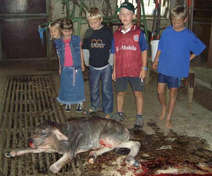 Ein Kälbchen kommt auf die Welt